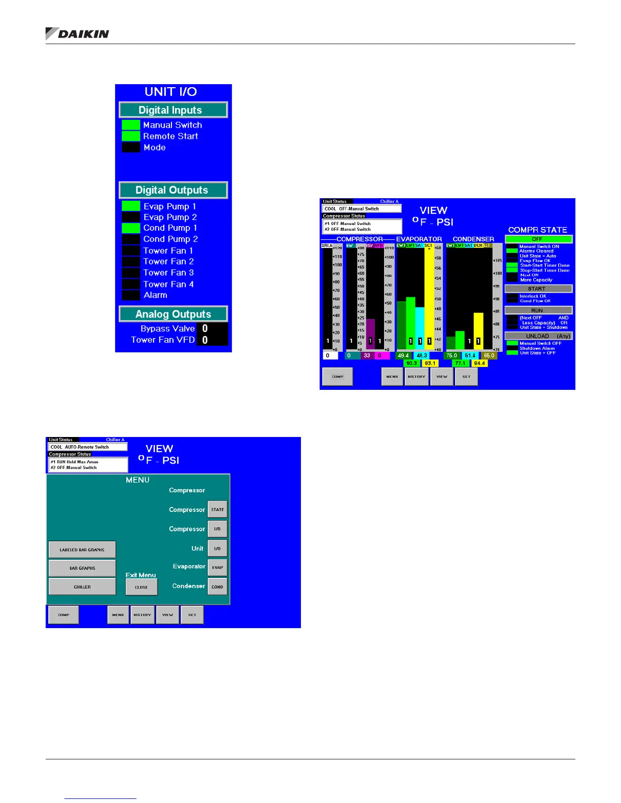 Compressor STATE, Compressor I/O, Unit I/O, EVAP, or COND