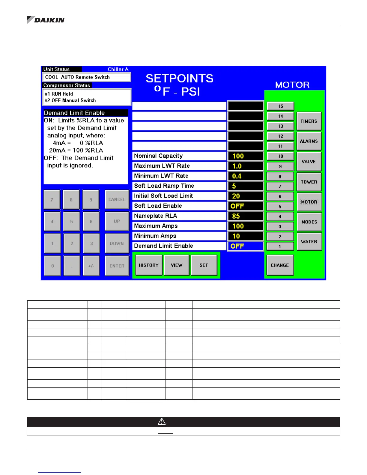 NOTE: Setpoints that have a technician level password (T) should only be changed by a Daikin Applied technician. Contact a