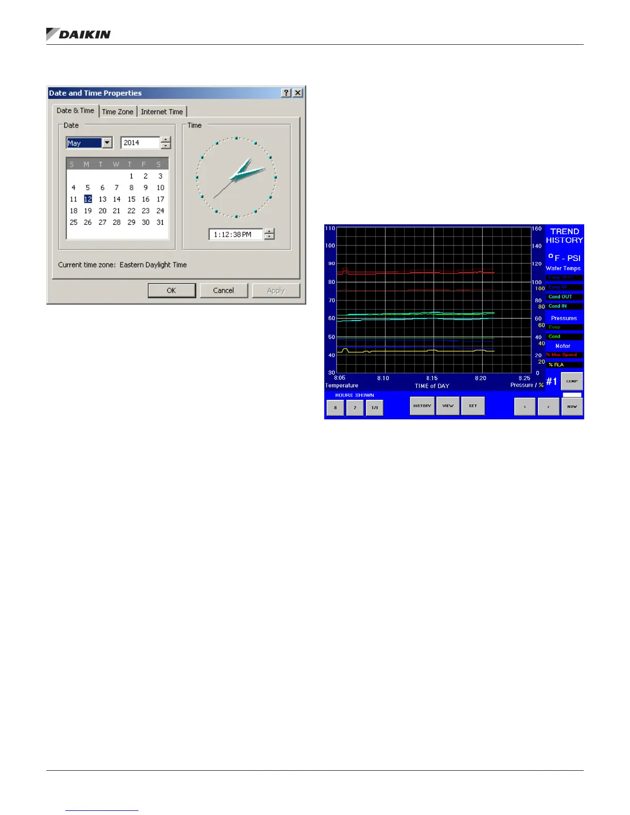 The Trend History Screen can display history for 8-hour,