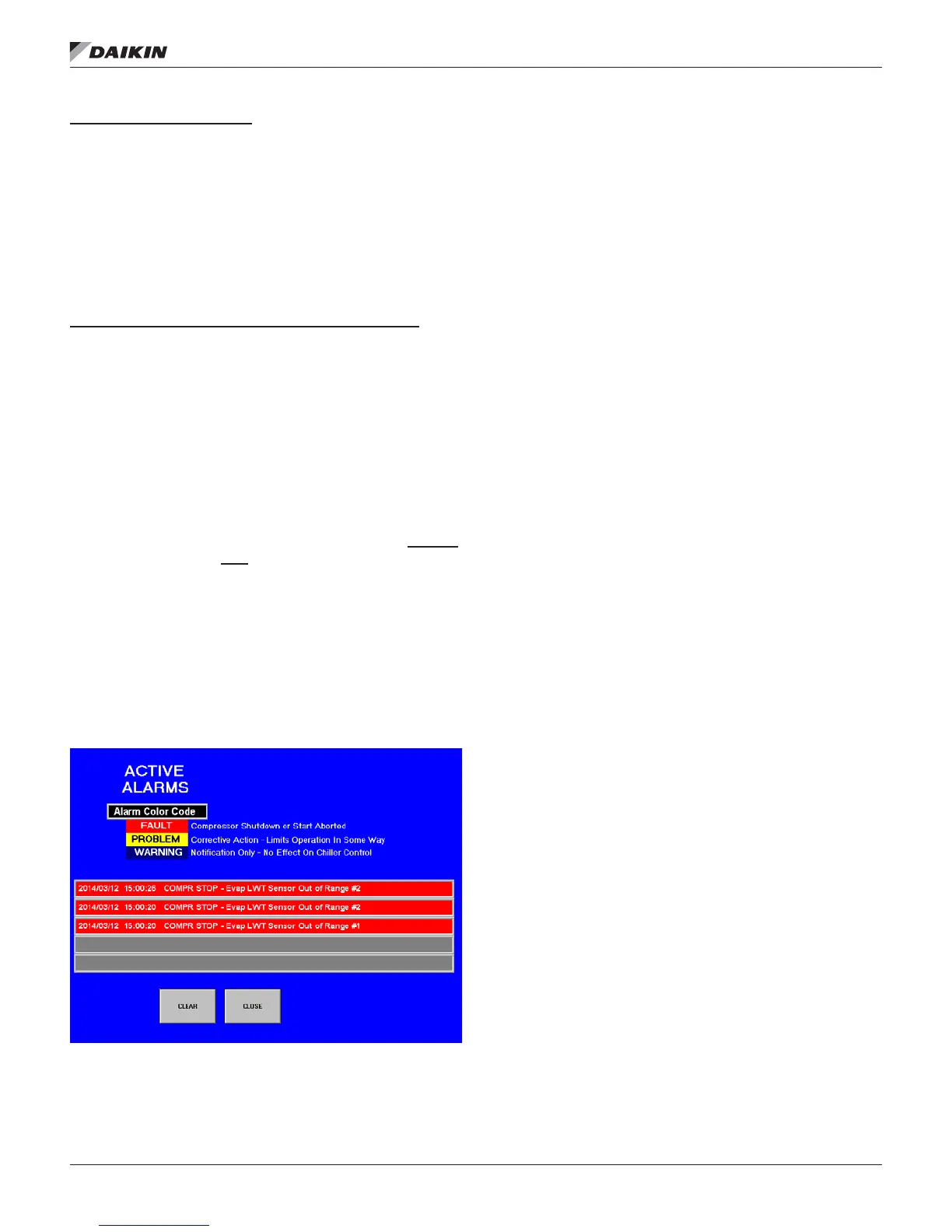 of the Alarm History Screen shows “ALARMS.” If it shows
