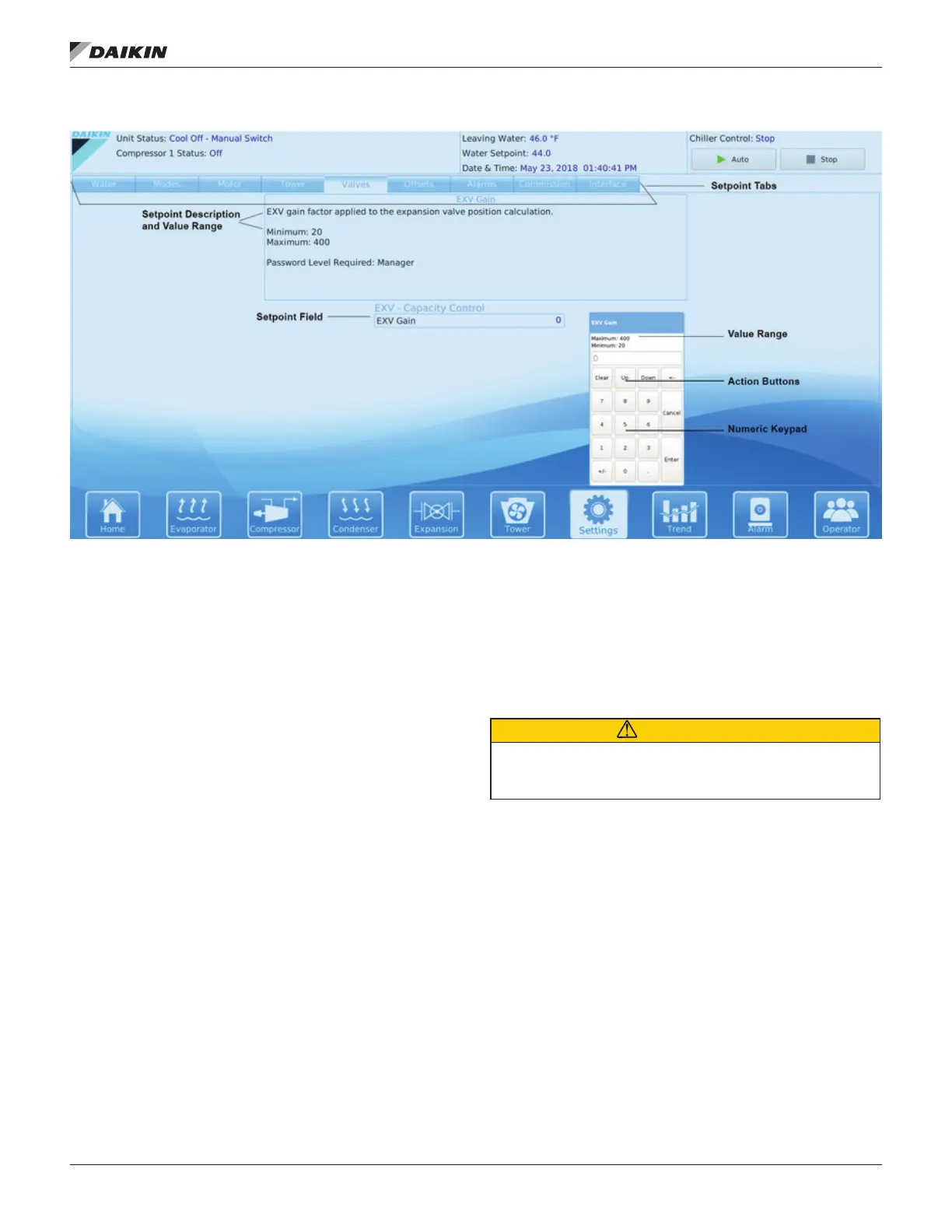 setpoint value. A keypad prompt will appear to enter a