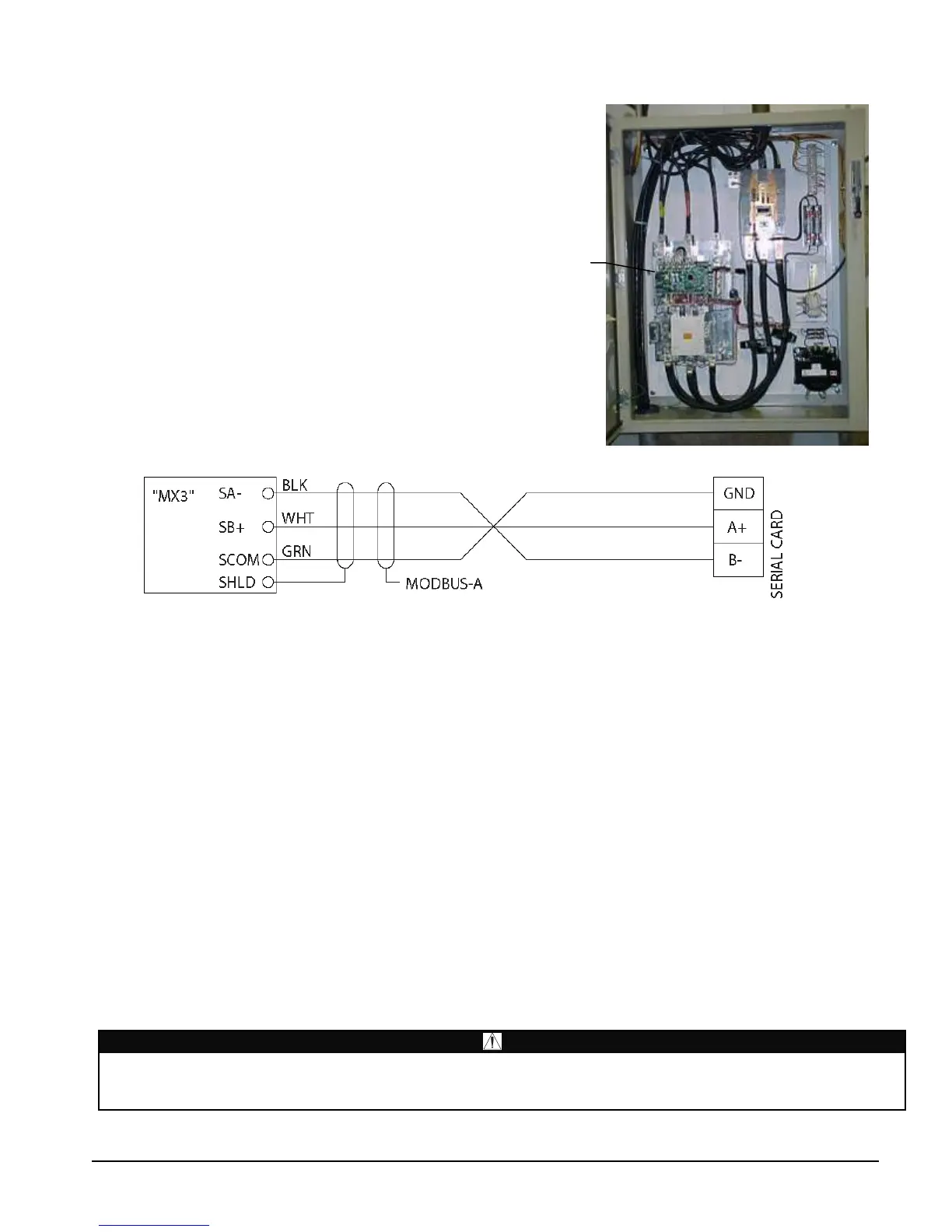 • The connections are (-) to (-), (+) to (+) and SCOM to GND with s shield connection on the starter terminal board.