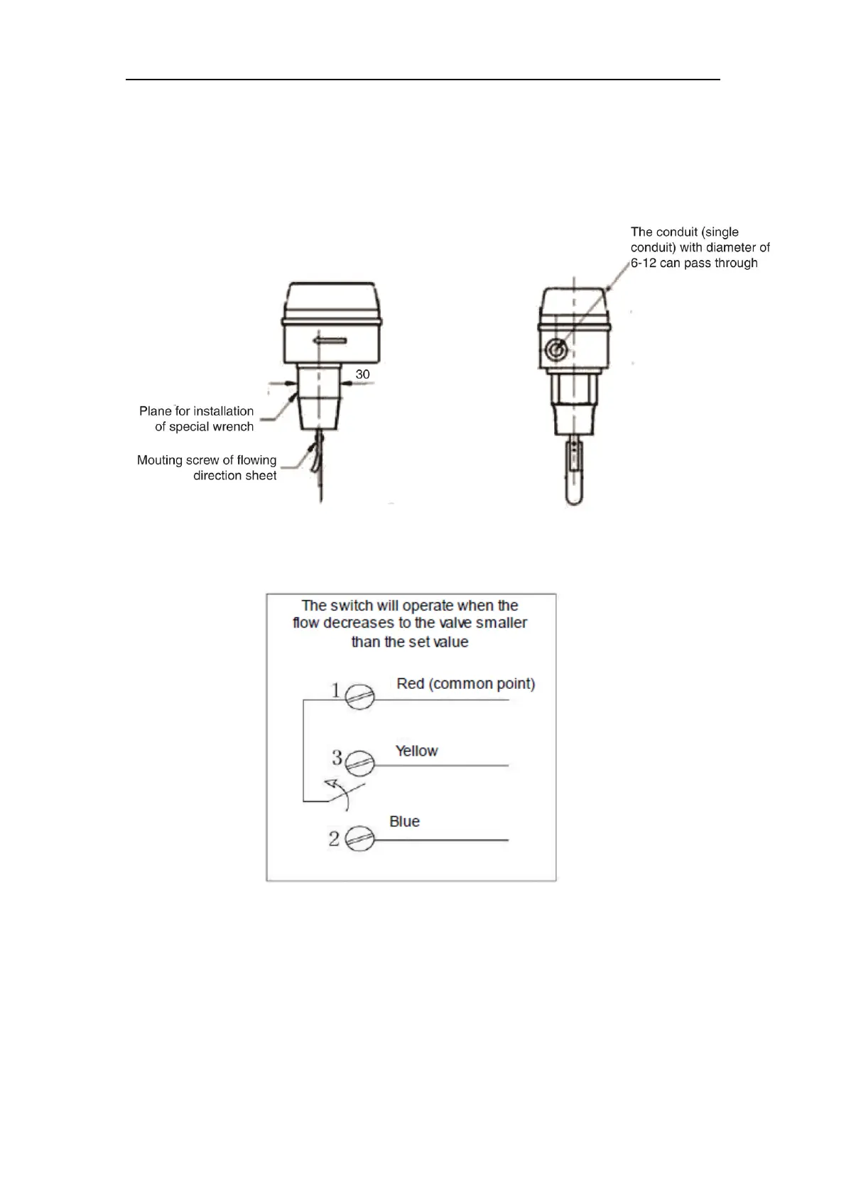 When sufficient liquid passes through the pipe and turns the flow switch on, the circuit