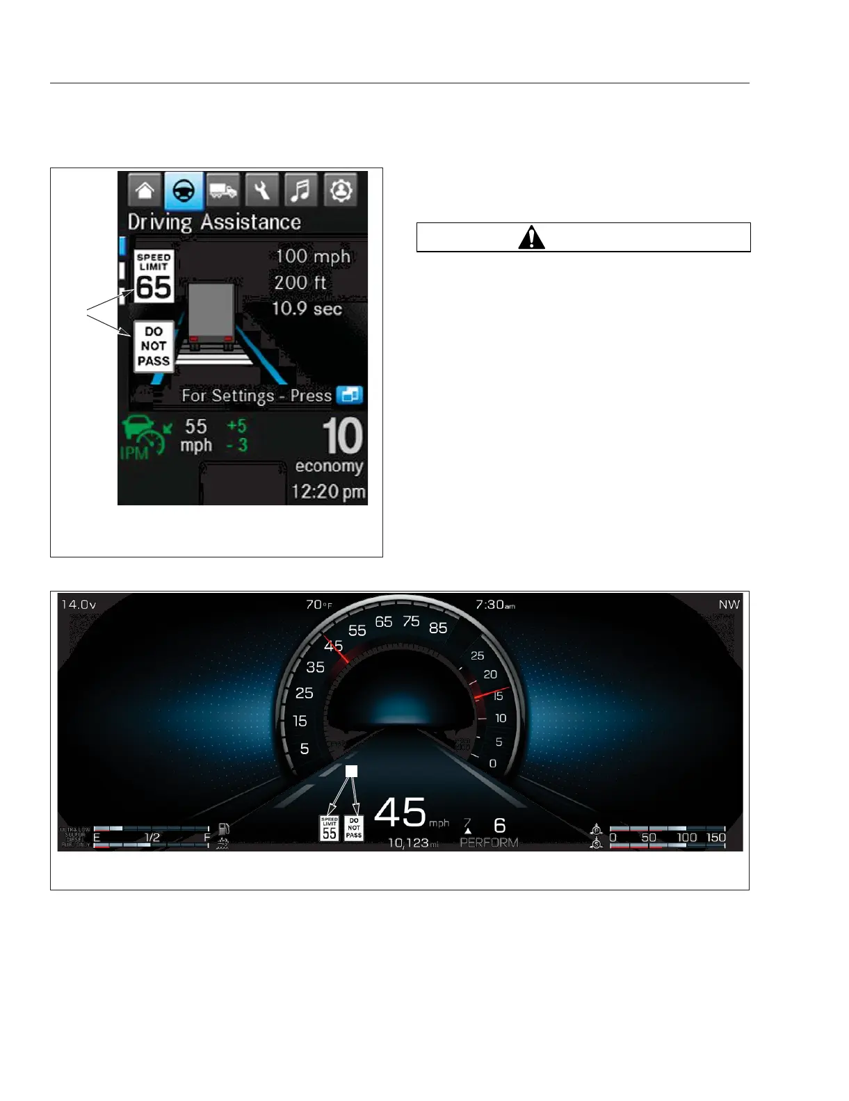 A. Detected Speed Limit and Do Not Pass signs displayed.