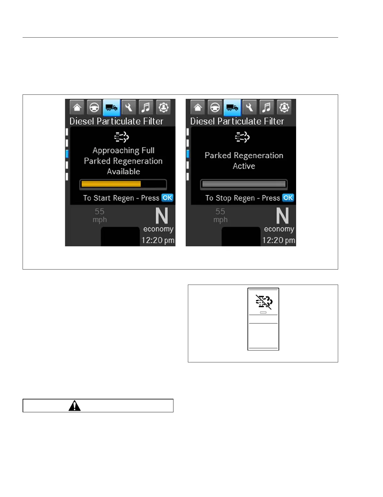 Fig. 14.2, Parked Regen Message Screens