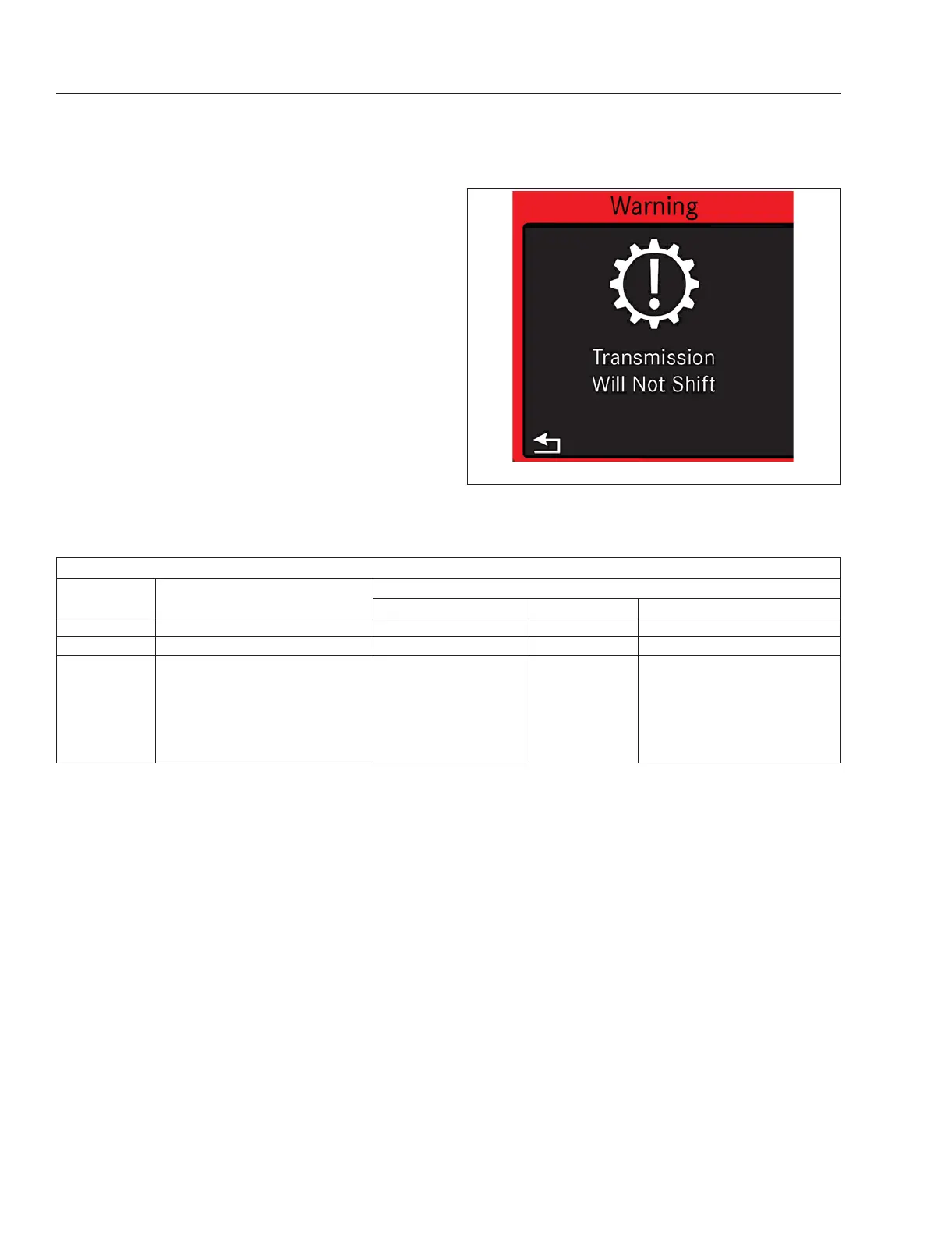 pop-up will appear and the transmission will not shift.