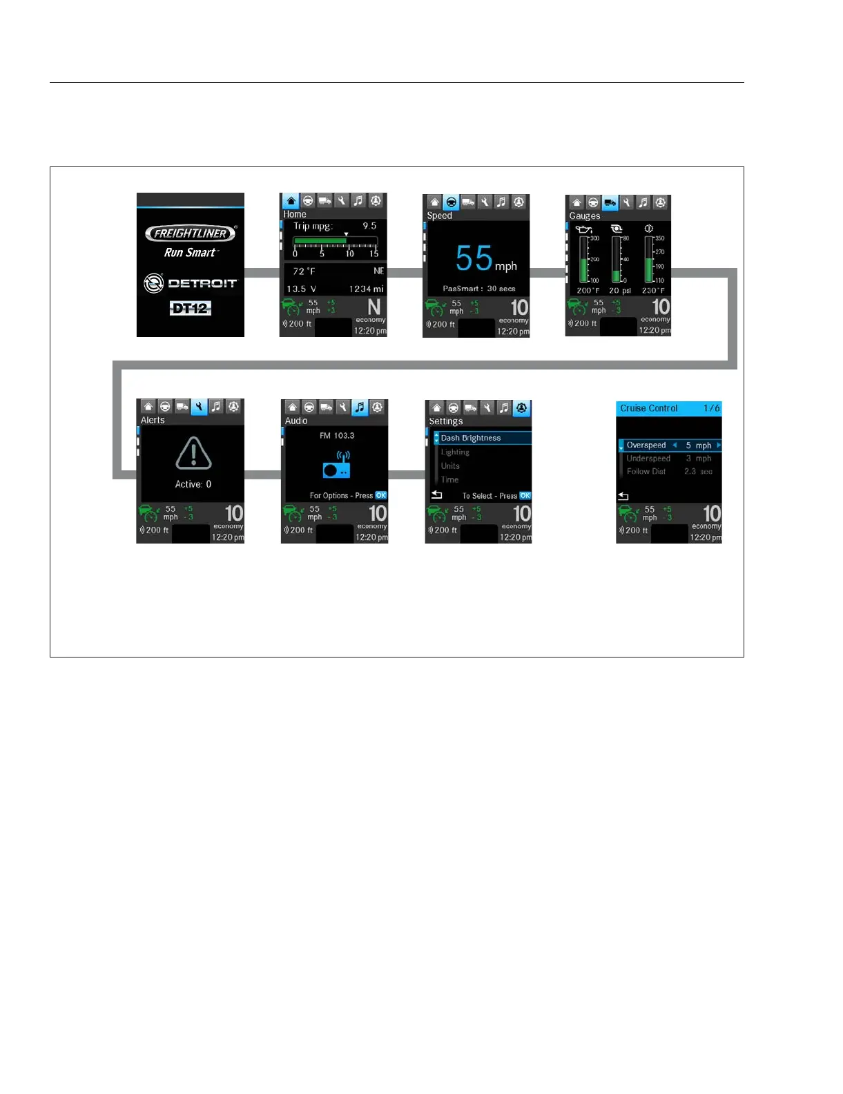 NOTE: Navigate the top-level menu by using the Menu right and Menu left buttons on the steering wheel. Navigate to