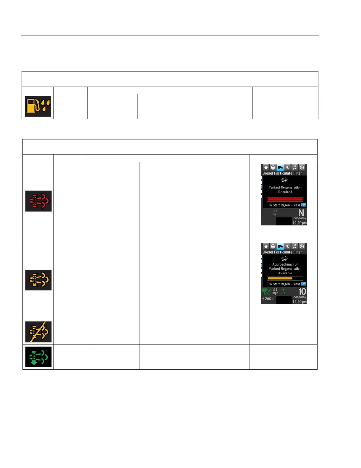 Indicates a parked regen is required