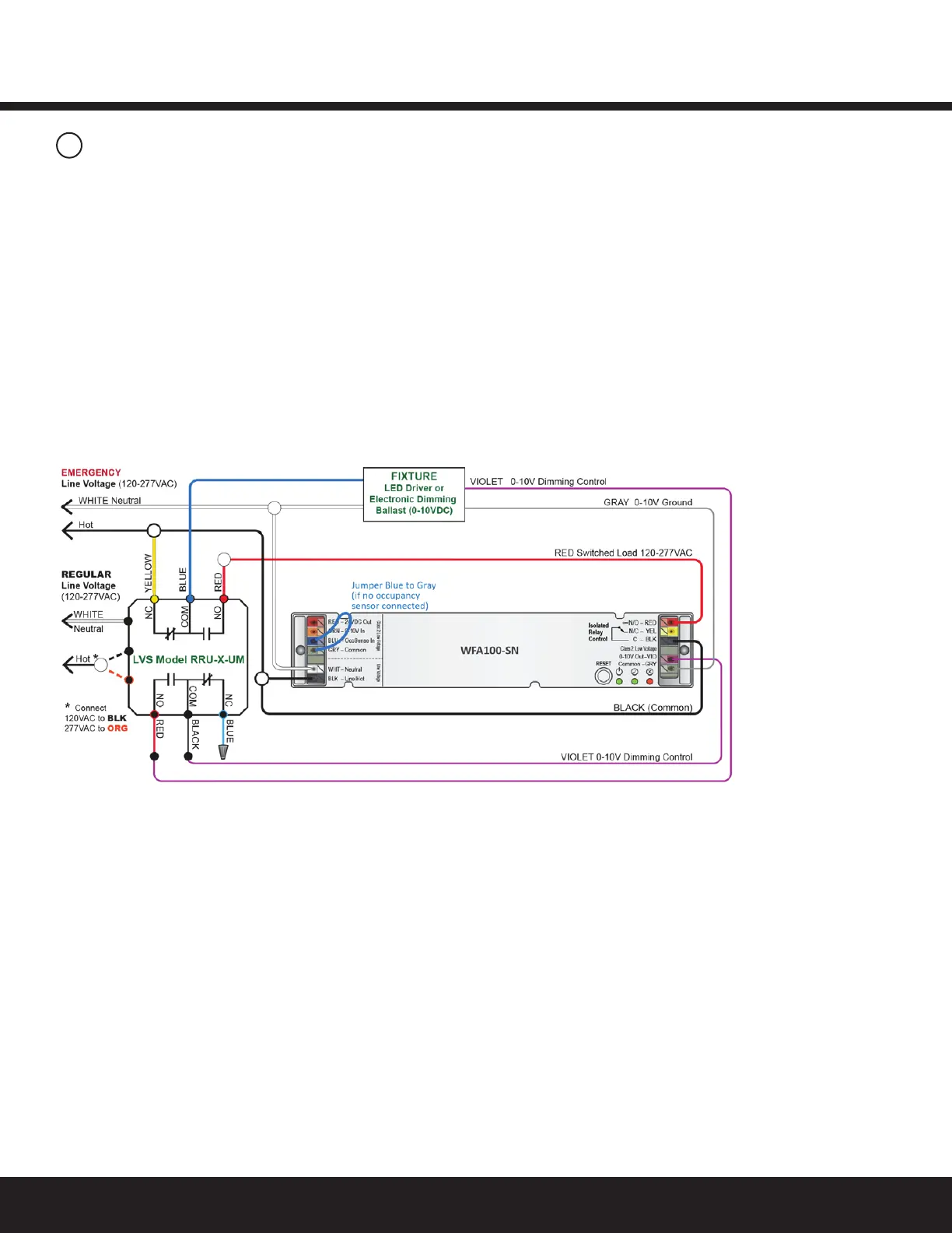 Figure 10: Bypass WFA100 switched power and 0-10V dimming control during power failure