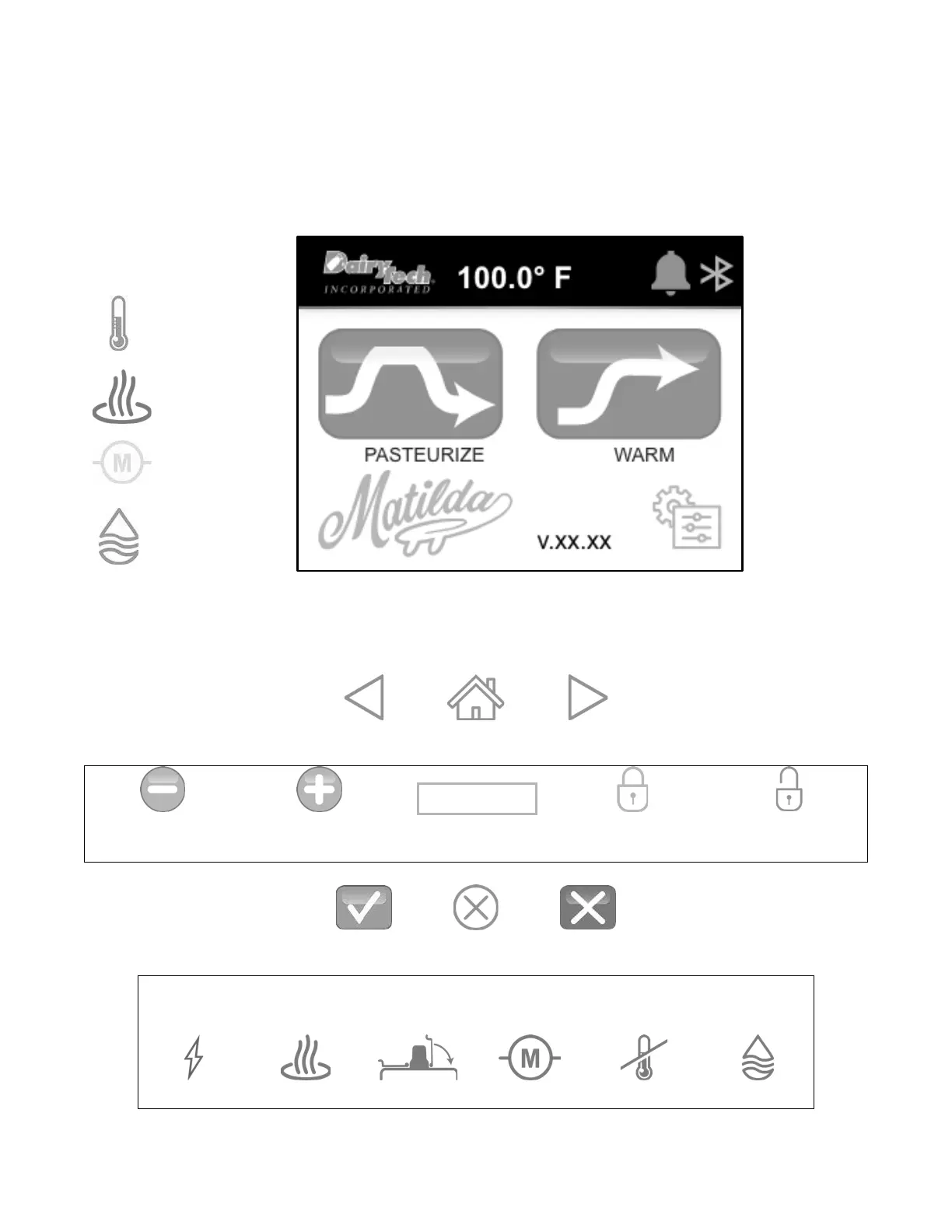 Dairy Tech Matilda - USING AND PROGRAMMING THE TOUCHSCREEN CONTROLLER; FUNCTION INDICATORS; CONTROLLER LEGEND; ERROR SYMBOLS