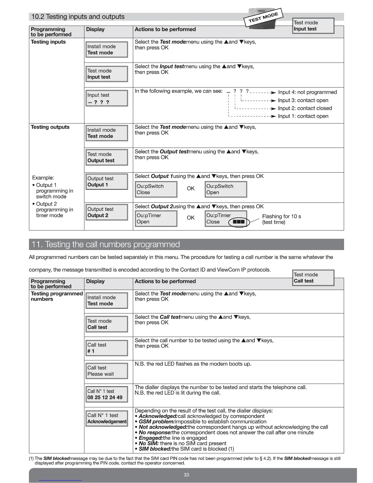 DAITEM 473-29X - 10.2 Testing Inputs and Outputs; 11. Testing the Call Numbers Programmed; Testing Programmed Numbers