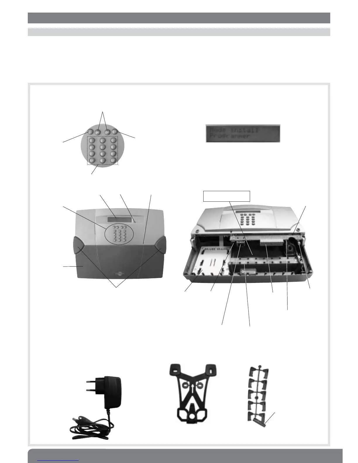 • Bag of accessories with cable clamps and grommets • Fixing bracket (on back of dialler)