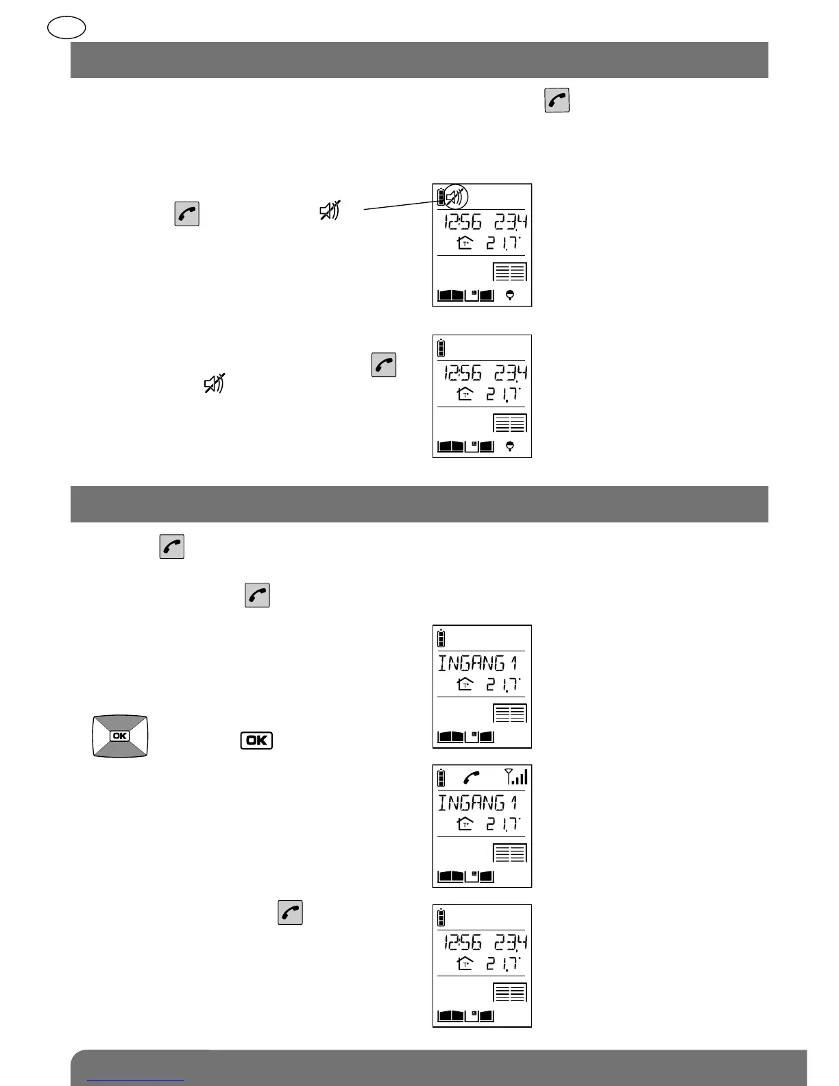 Het is mogelijk de handset in de modus ‘stil’ te zetten via de toets .