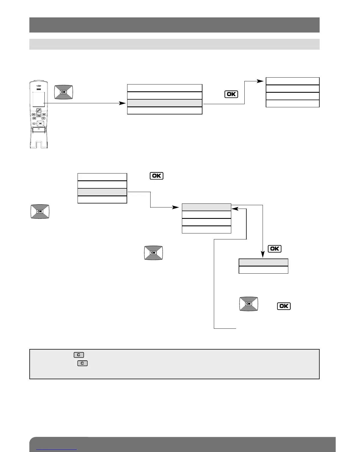 Example of how to browse through the HANDSET menu: