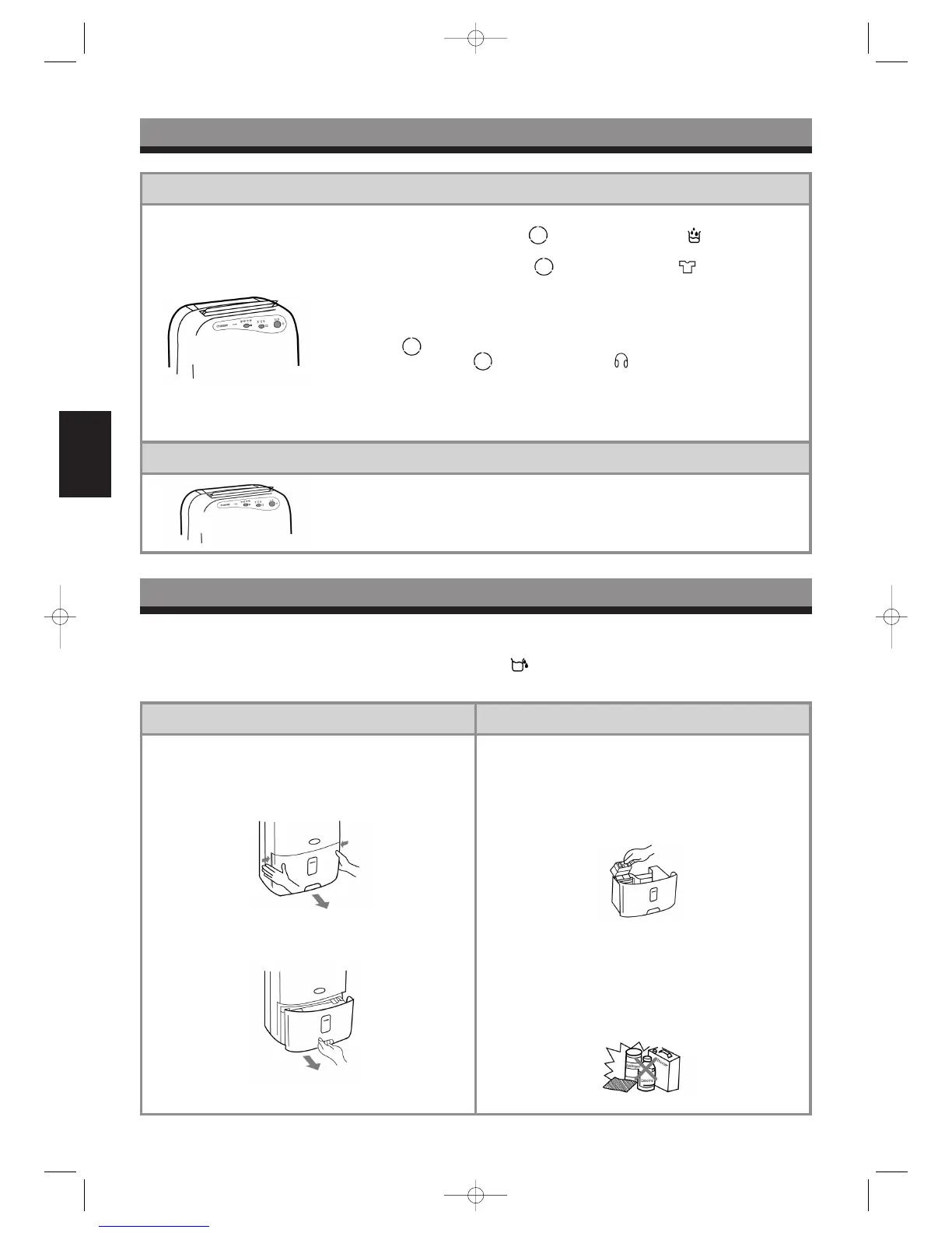 If the drainage tank becomes full (approx. 5.5 liters), the “ ” lamp lights to alert the user, operation stops