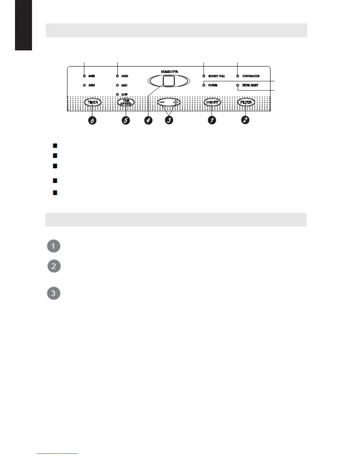 Pulse este botón para encender y apagar el deshumidifi cador.