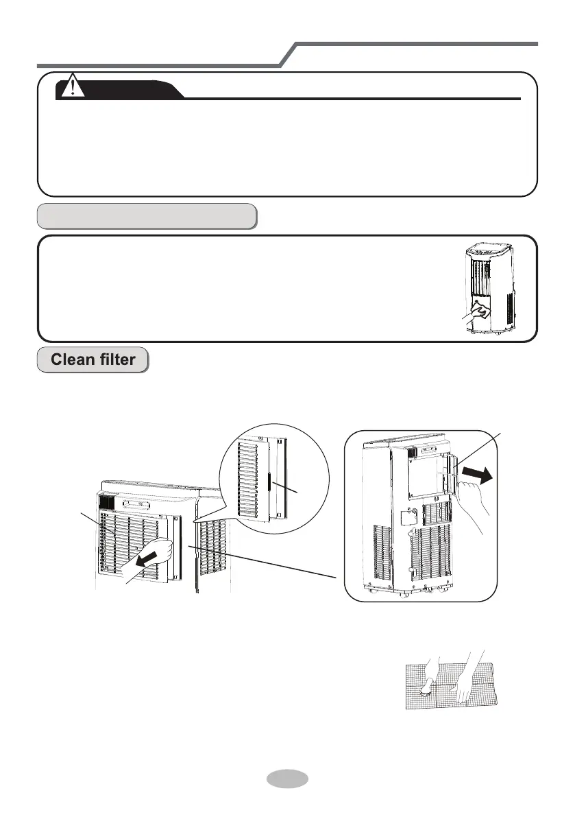 ● Do not wash air conditioner with water. Otherwise, it may cause electric