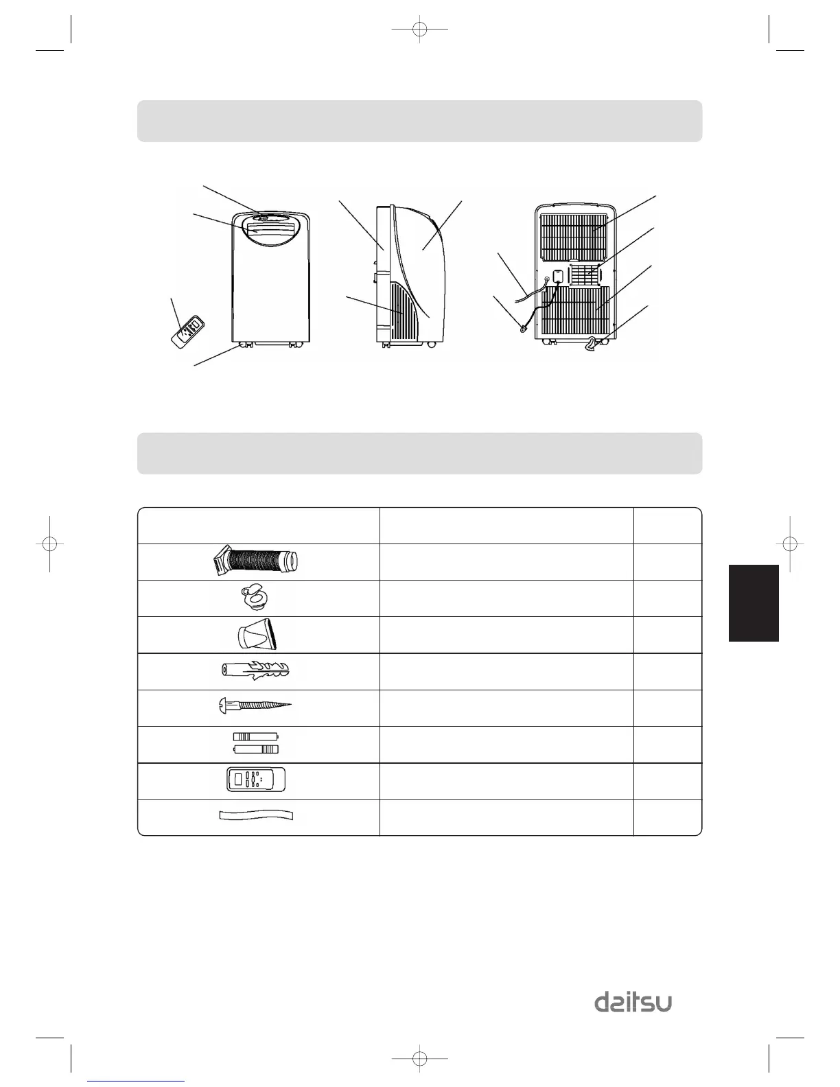 Daitsu ADP 9AM - Names of Parts; Accessories