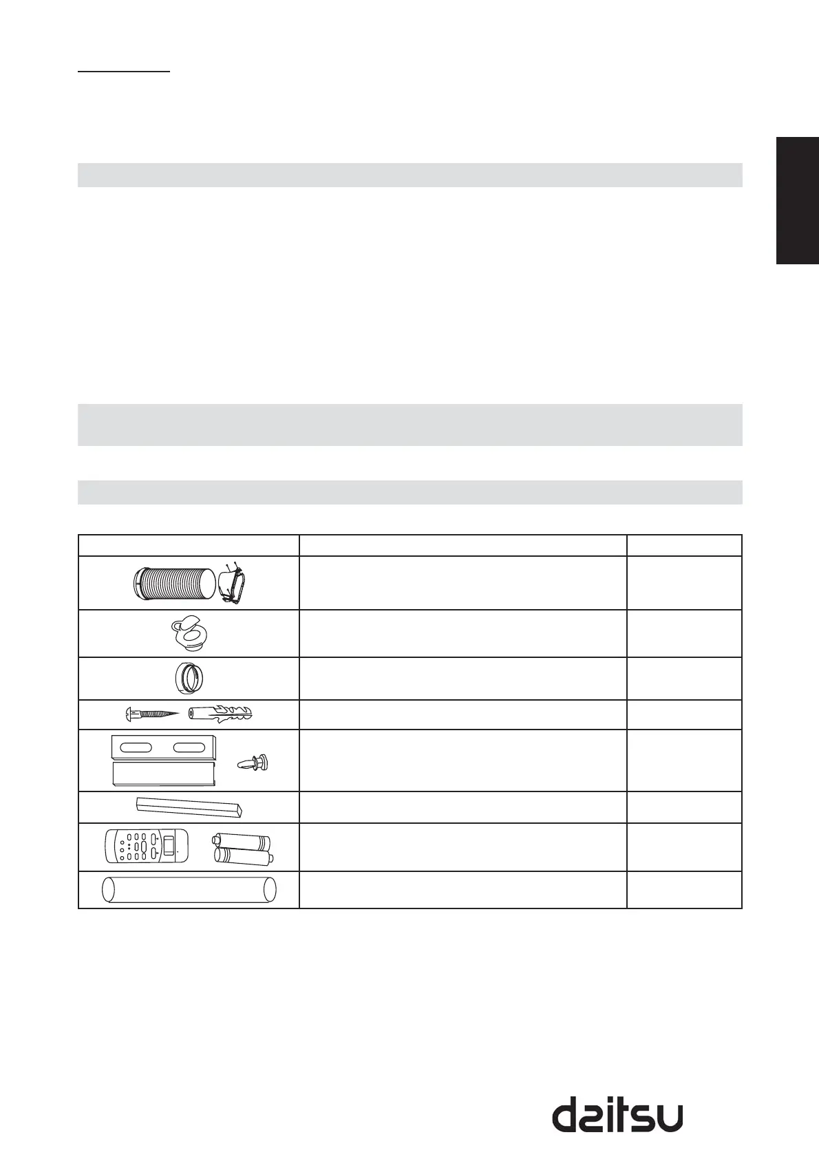 Check all the accessories are included in the package and please refer to the installation instructions for •