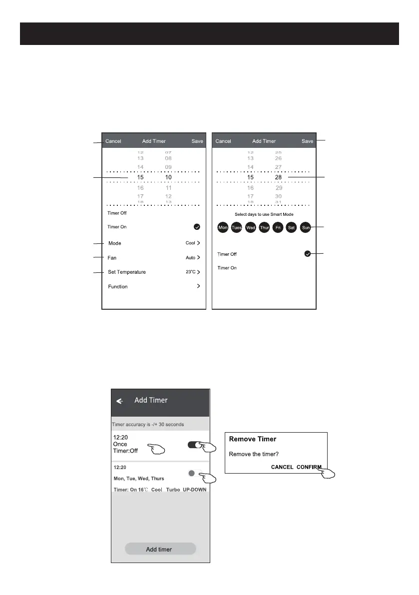 3. Seleccione el tiempo, seleccione días de repetición y encendido/ apagado del temporizador.
