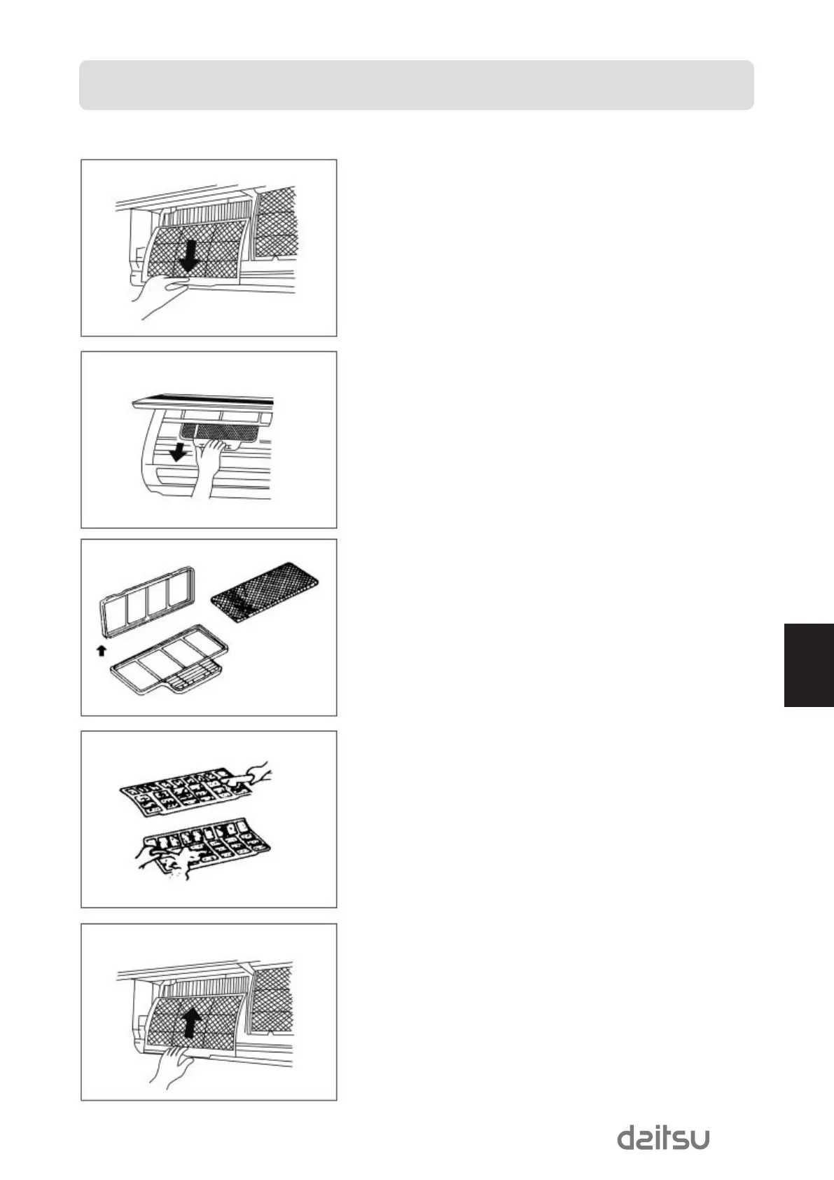 7. Insert the AIR FILTER from the top side into the unit until