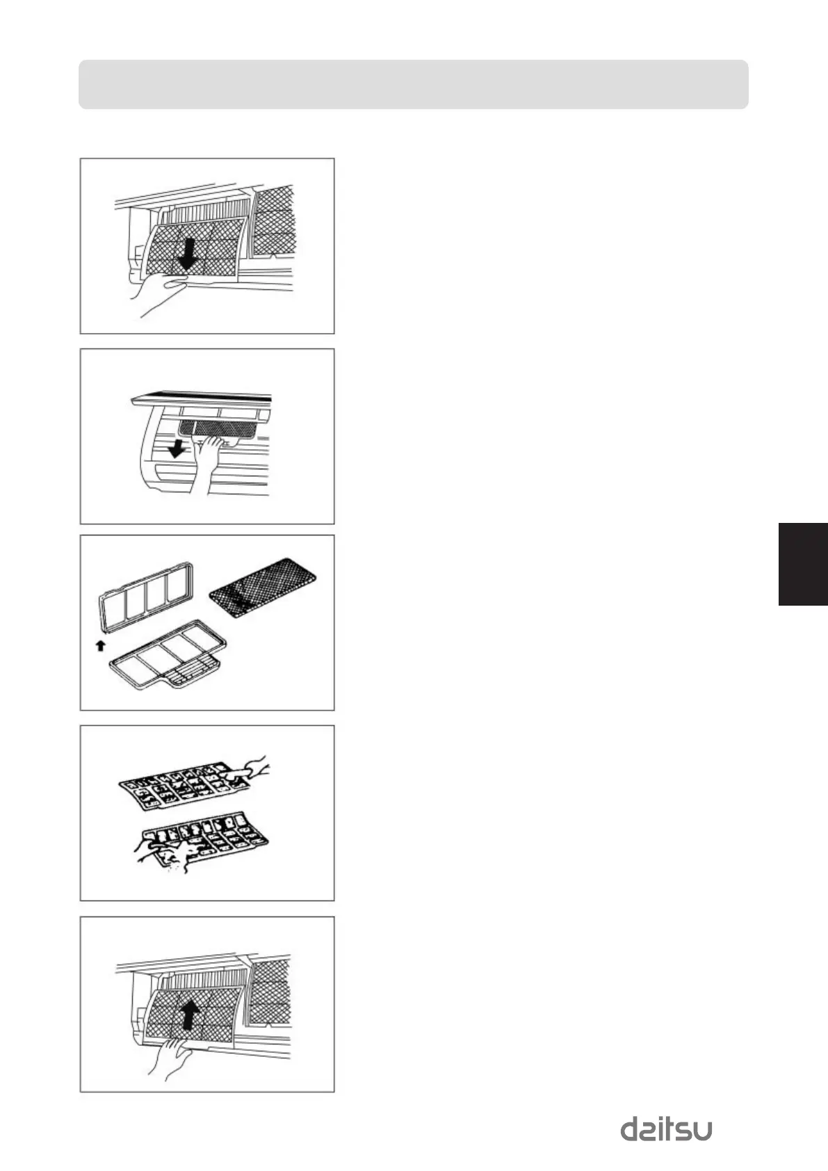 4. Estrarre il filtro di aria dall'unitá interna.