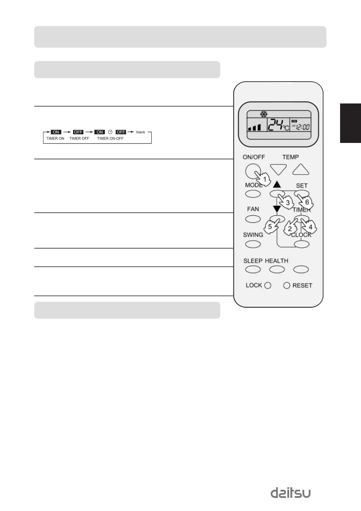Seleccione el modo Timer deseado (TIMER ON-OFF), “ON” parpadea en el display.