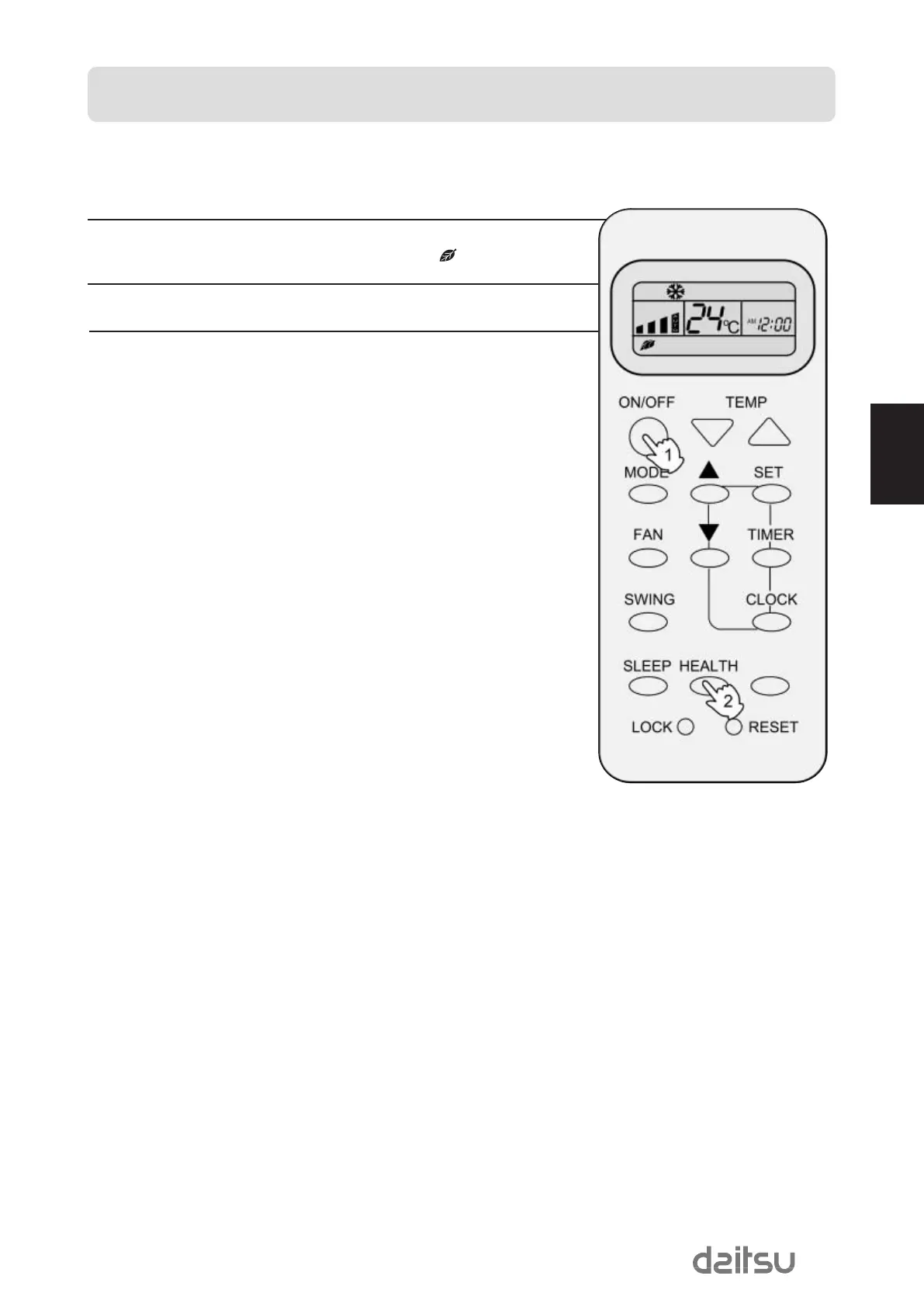 (2) Premir a tecla "HEALTH" uma vez. Aparece " " no visor. O ar