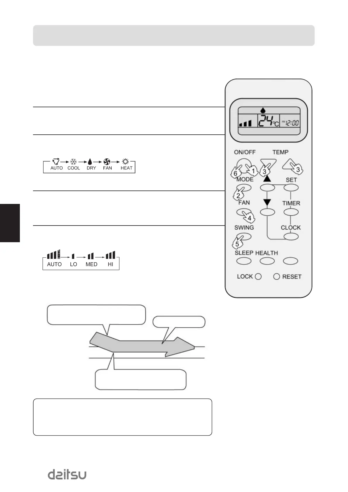 Appuyer sur la touche FAN. À chaque pression, la vitesse du ventilateur change