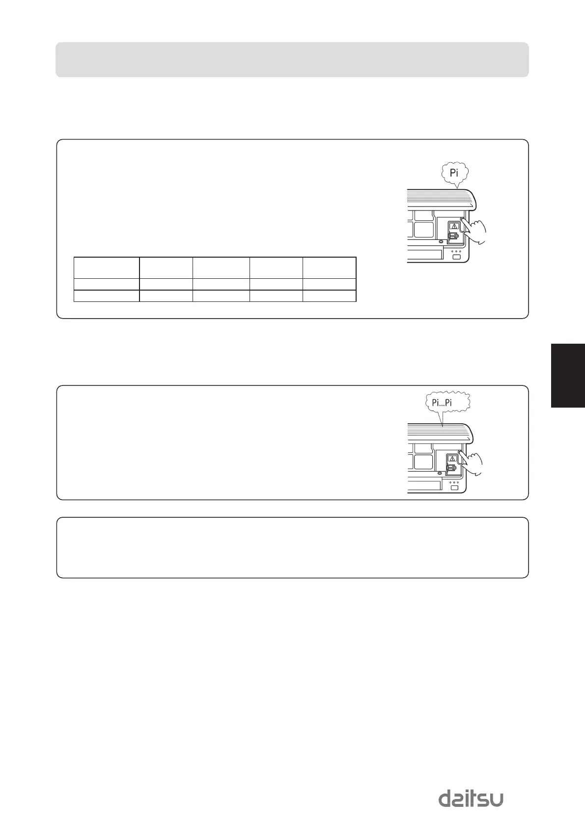 cela, le son ''Pi'' est émis deux fois. Retirer le doigt du bouton et le climatiseur