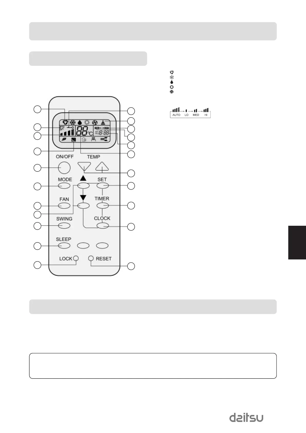 Used to select fan speed LO, MED, HI, AUTO