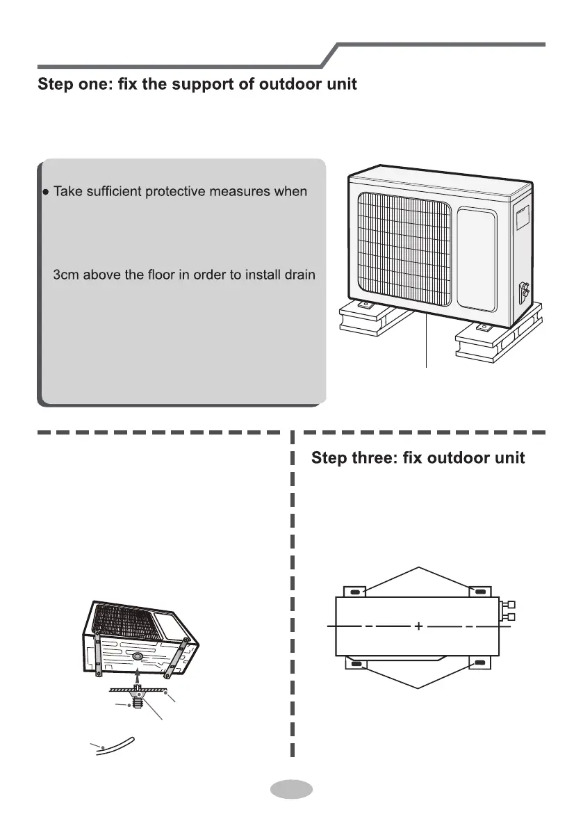 2. Fix the support of outdoor unit on the selected location with expansion screws.