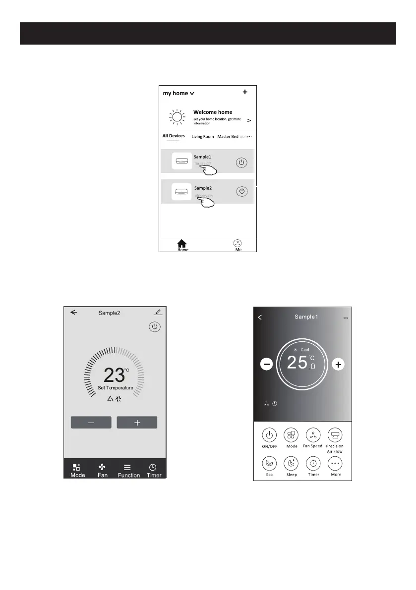 O ecrã de controlo do dispositivo aparecerá manualmente ao tocar o nome do dispositivo no ecrã inicial.