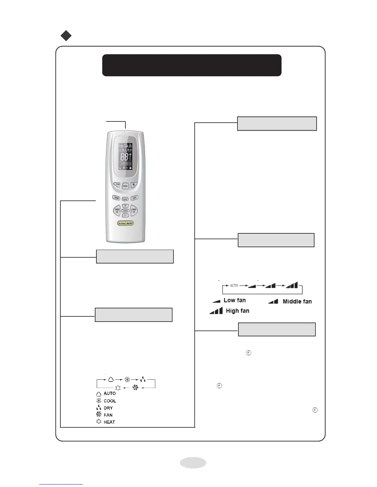 sequência: Auto, Cool, Dry, Fan, Heat. O modo