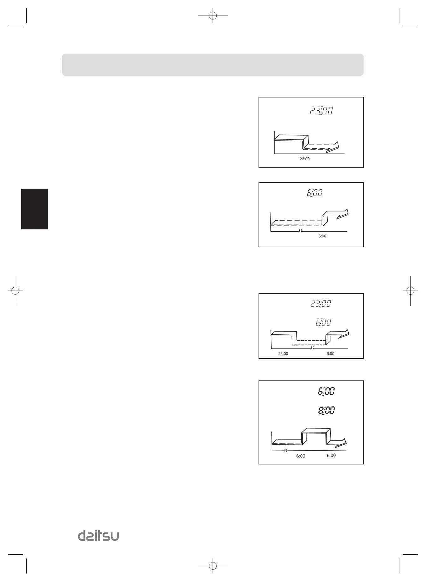 4- Utilizar a tecla TIME ADJUST para exibir "8:00" no indicador de desligar do