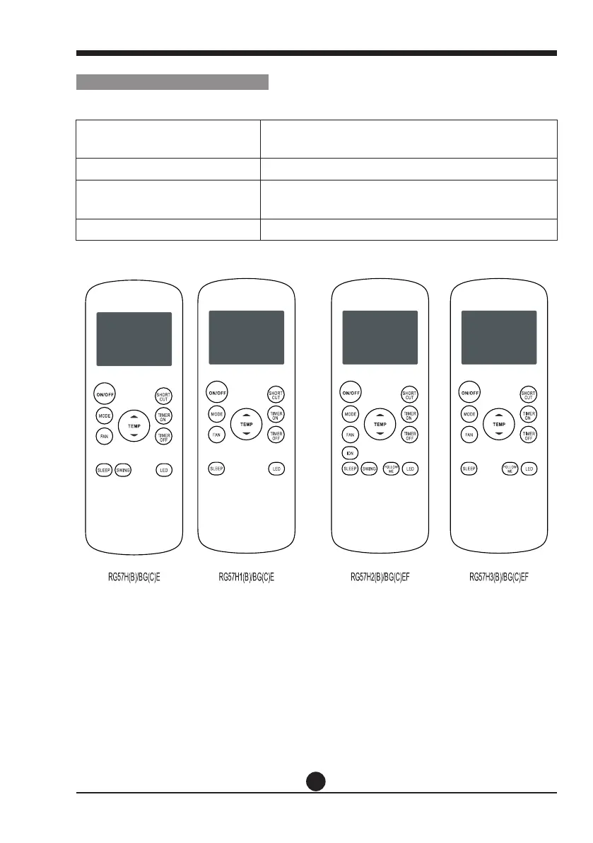 Daitsu RG57H(B)/BG(C)E - Specifiche del Telecomando