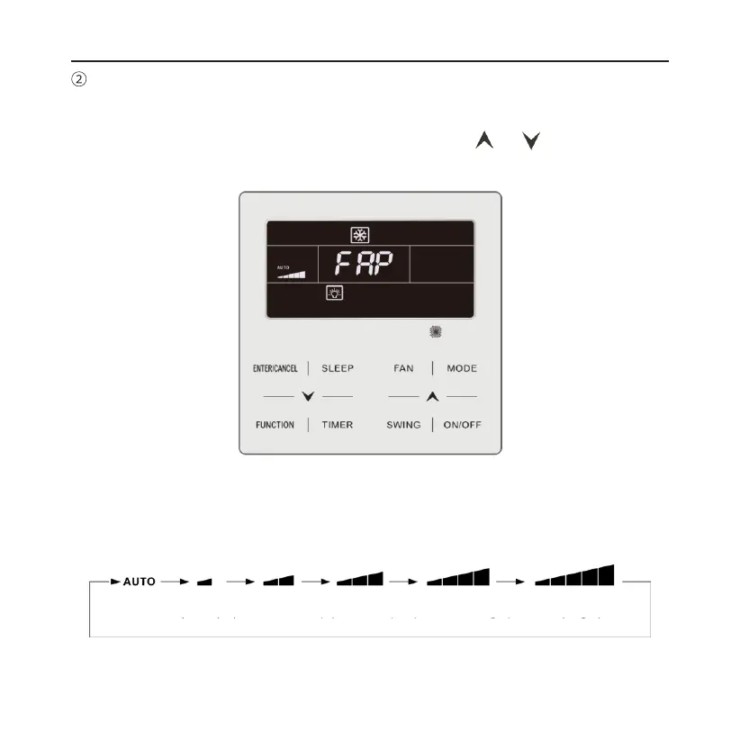 (1) Ad unità accesa, premendo il tasto FAN (Ventilazione) è possibile impostare la
