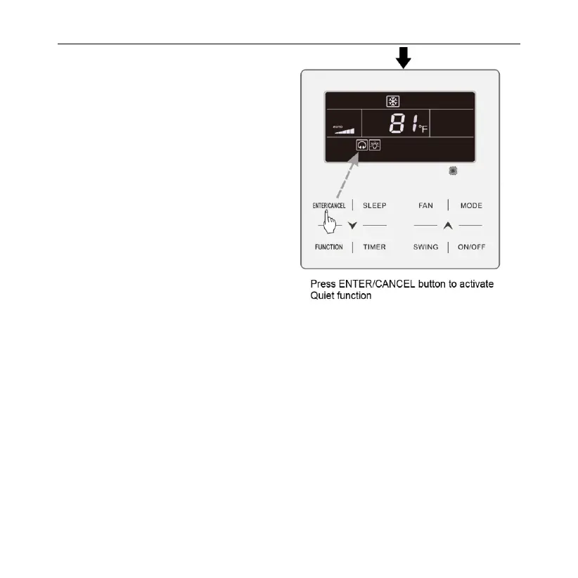 ① When Quiet function is enabled, indoor unit will operate at quiet fan speed.