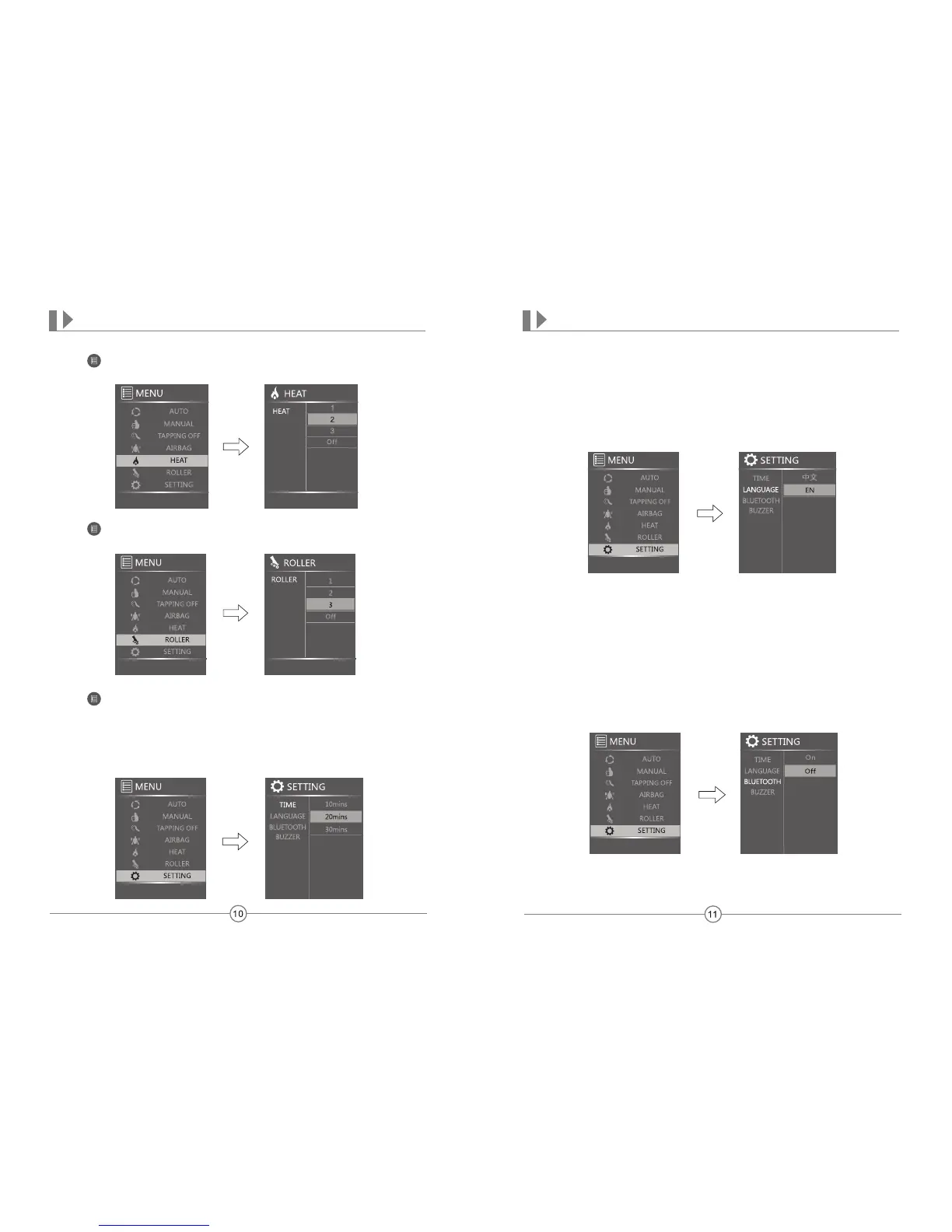 your desired length of time for each massage: 10, 20, or 30 minutes. Press the OK