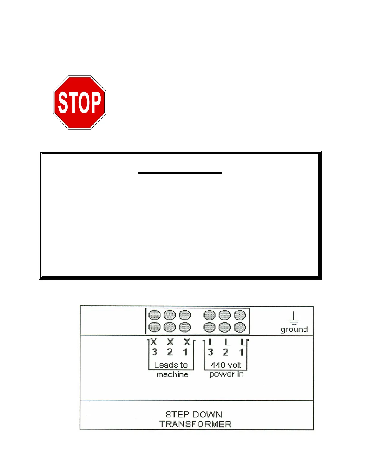connect 440-volt power directly to this machine. The use of a