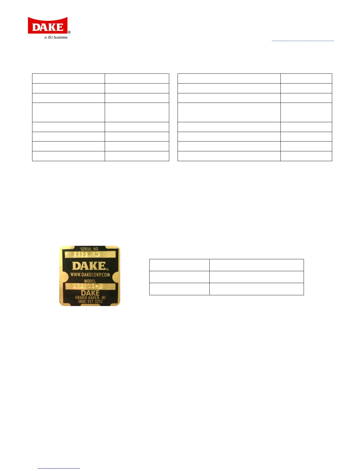 information is only found on the black and gold Dake tag shown below. If contacting Dake this