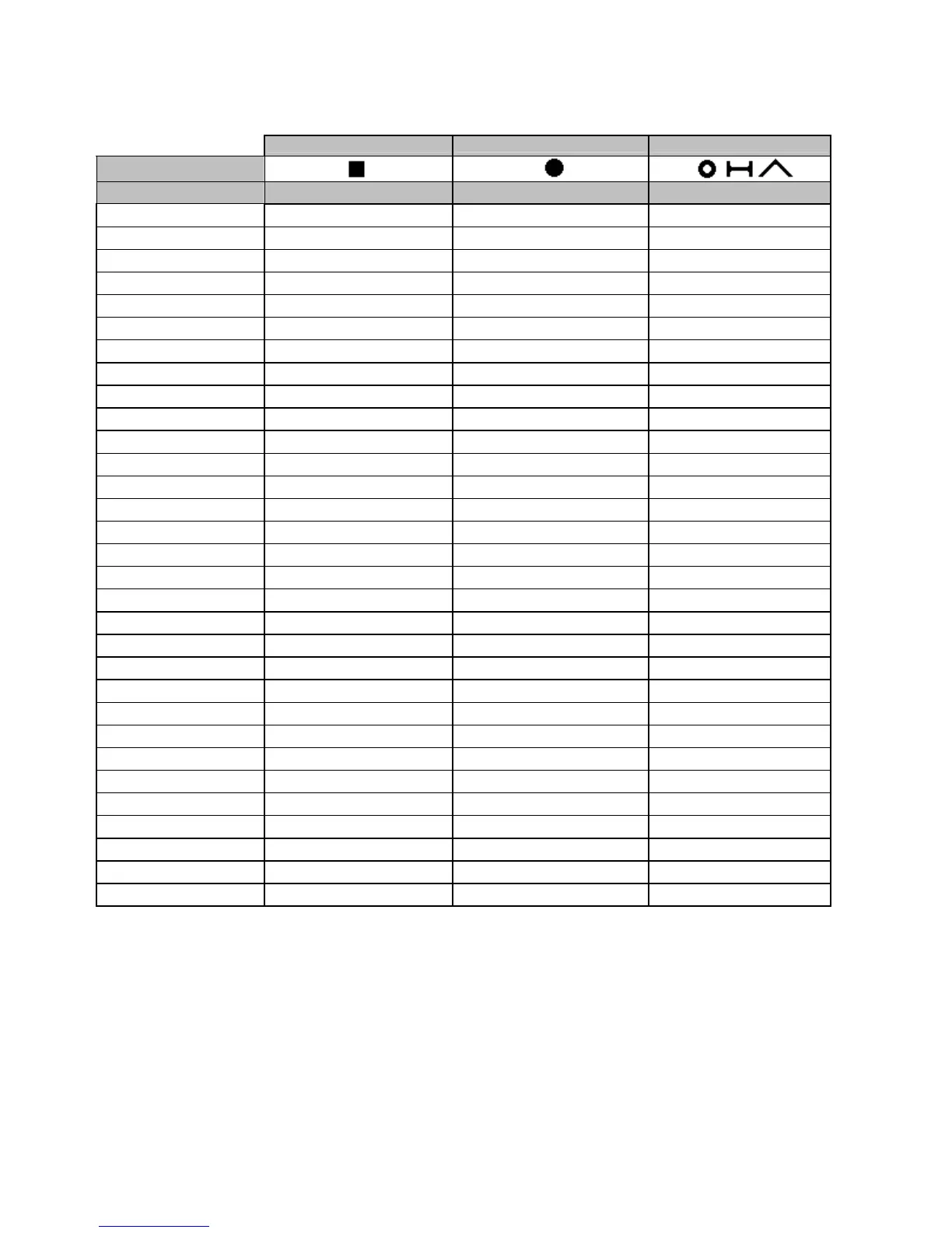 within that family of material. The top six columns give material dimensions. Below these column are