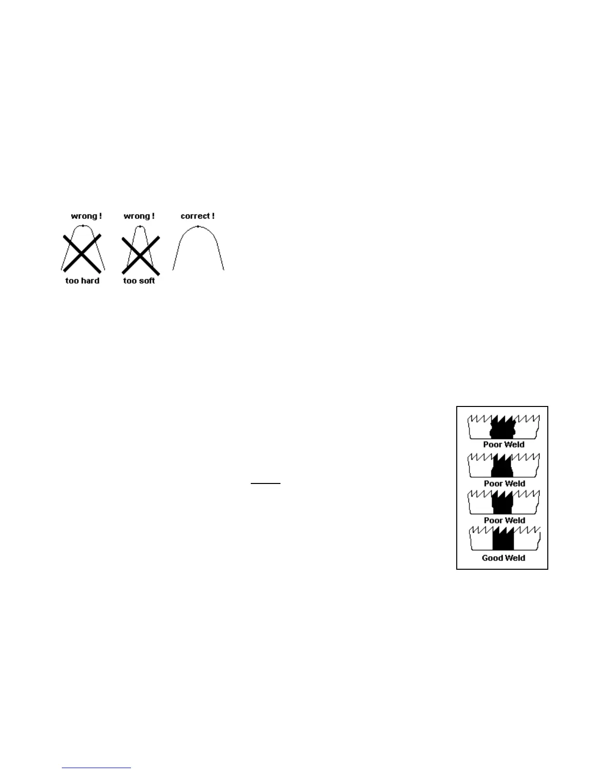 reduced or both settings changed. We must emphasize once again that proper welds cannot be