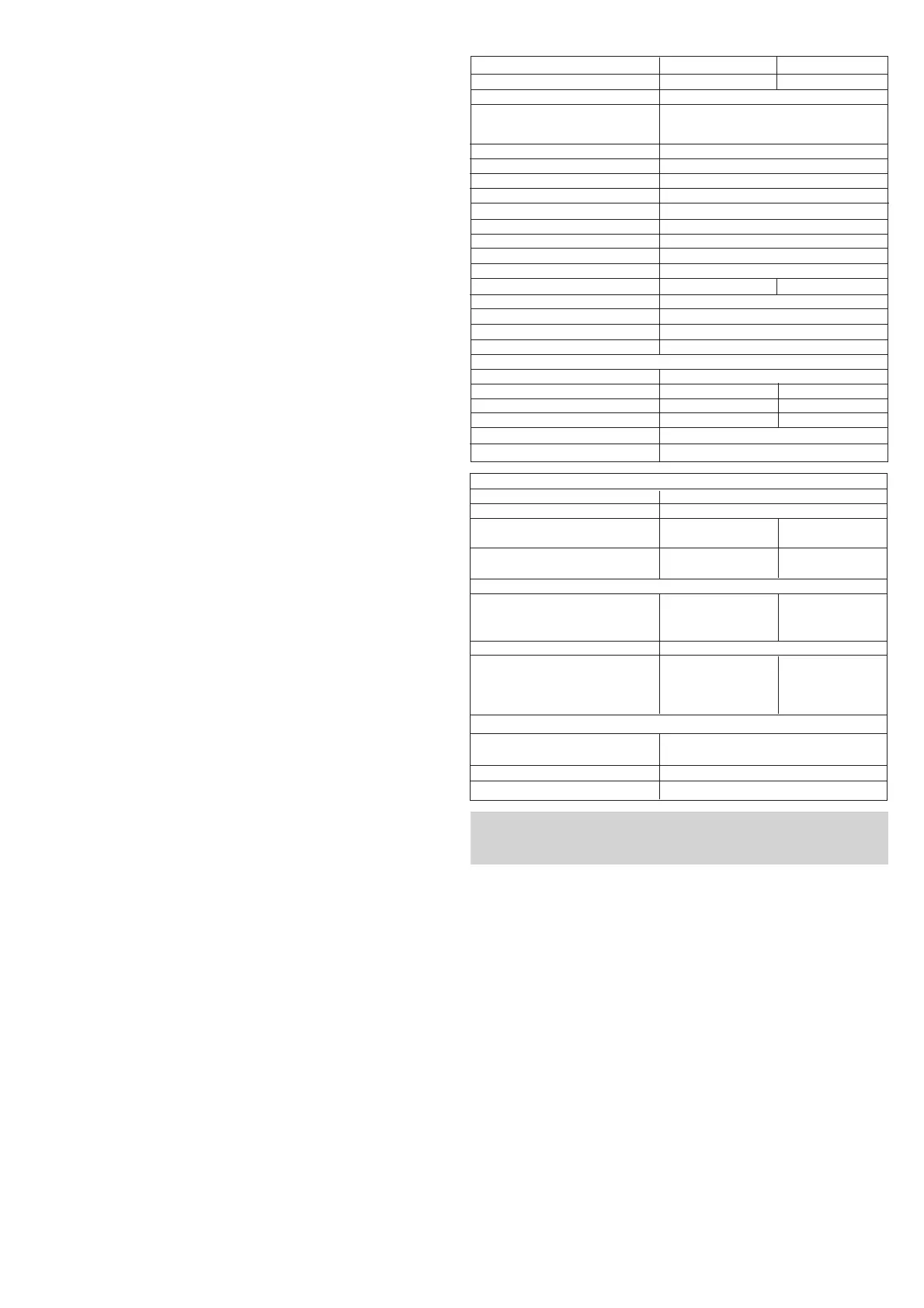Technical data and number of batteries