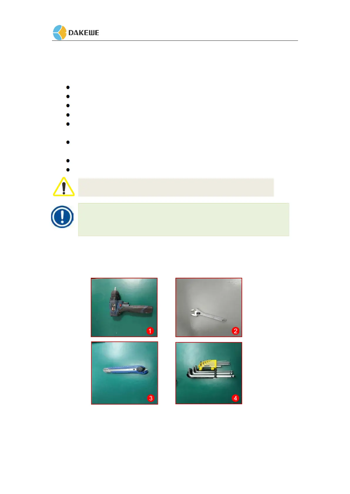 1. Electric screwdriver 2. Adjustable wrench 3. Utility knife 4. Allen wrench