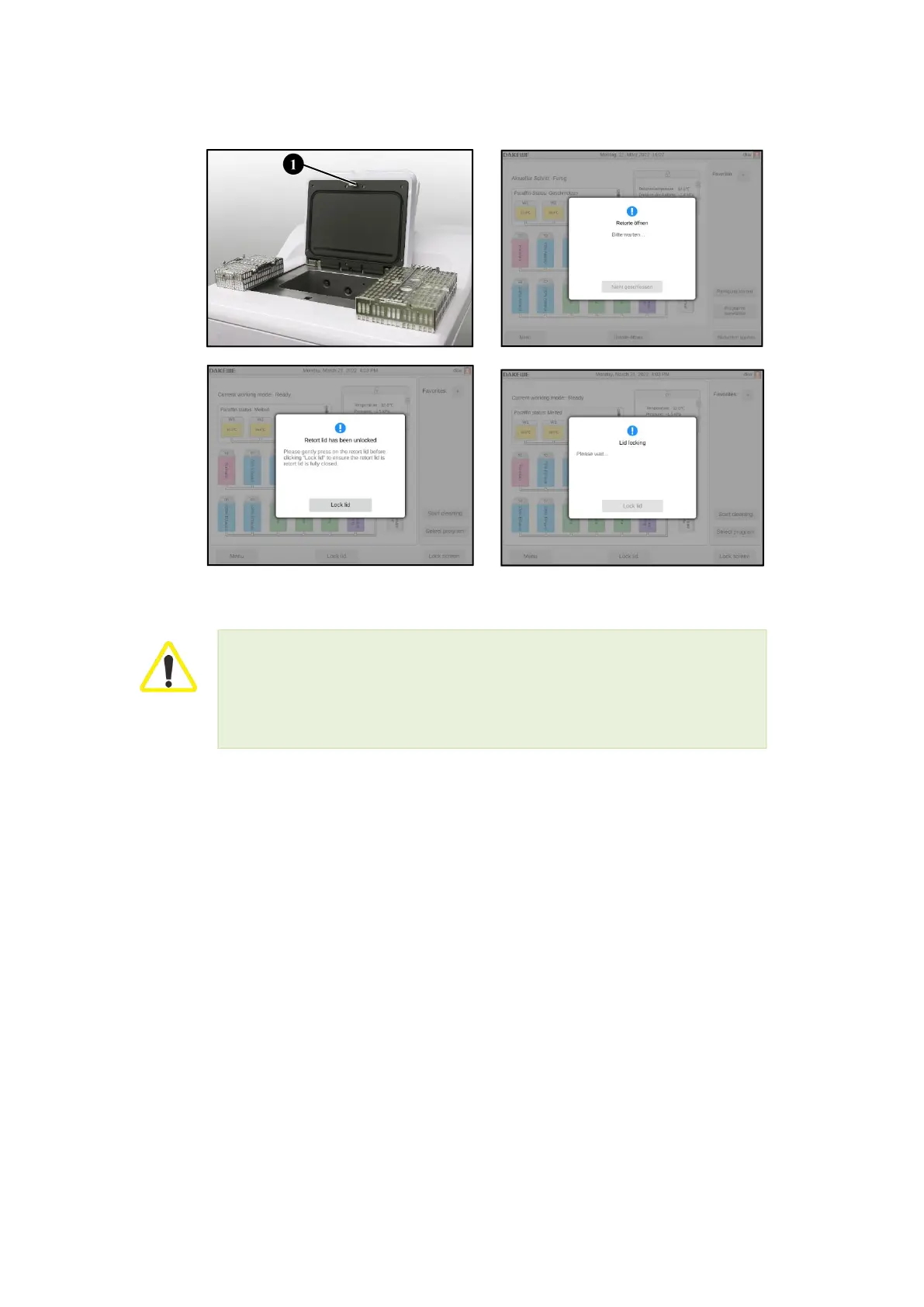The tissue processing cylinder head is controlled by an electronic lock. When locking, do