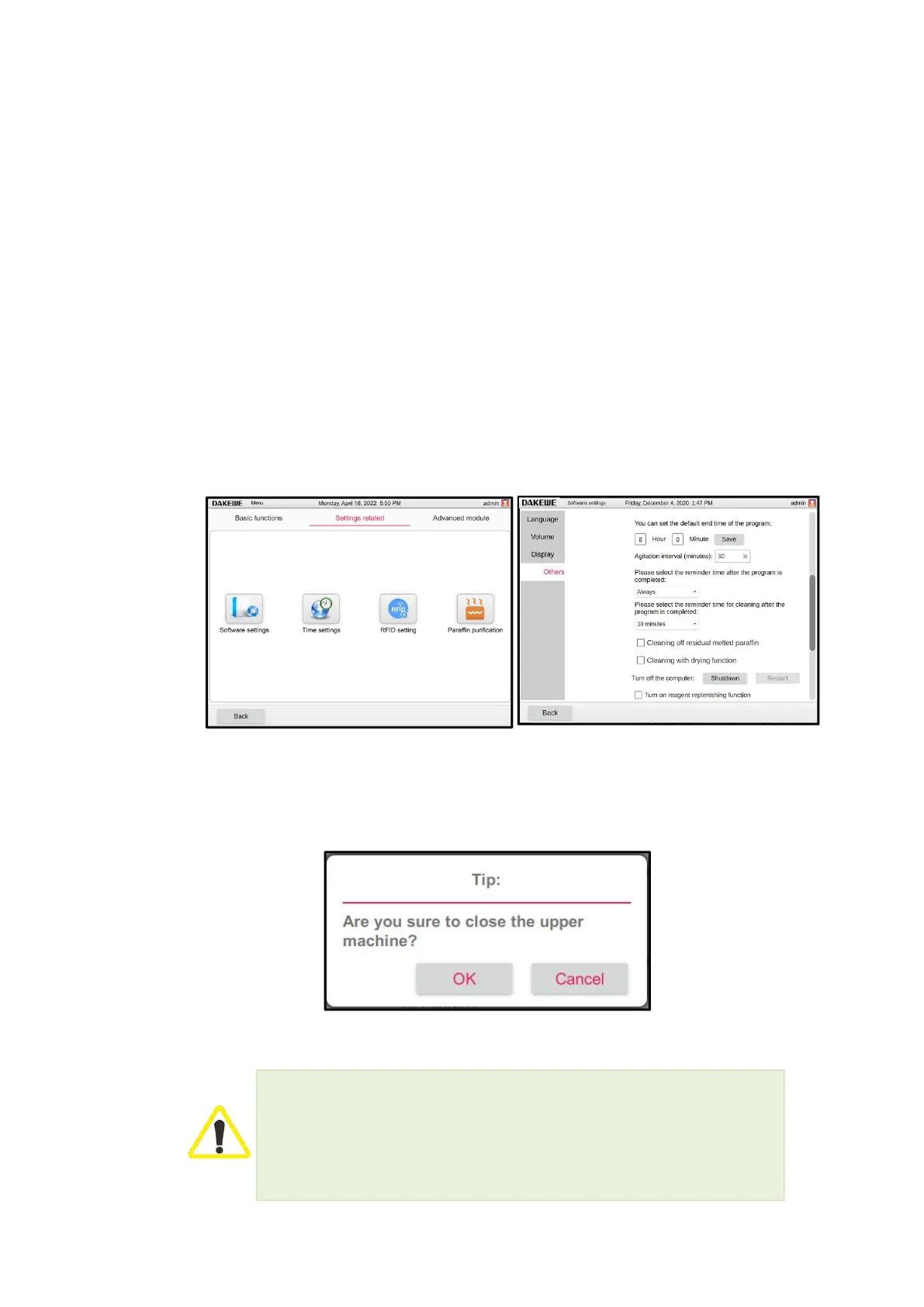 interface, and re-enter the password to return to the software operation interface.