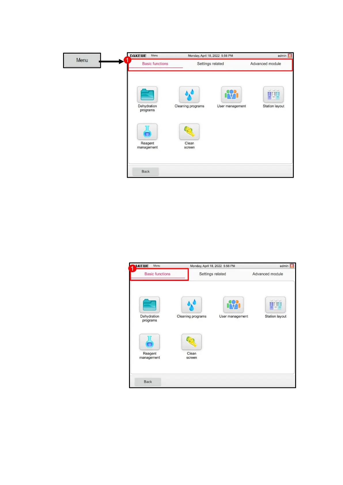 n select the dehydration program, rinse program, user management, site layout, reagent