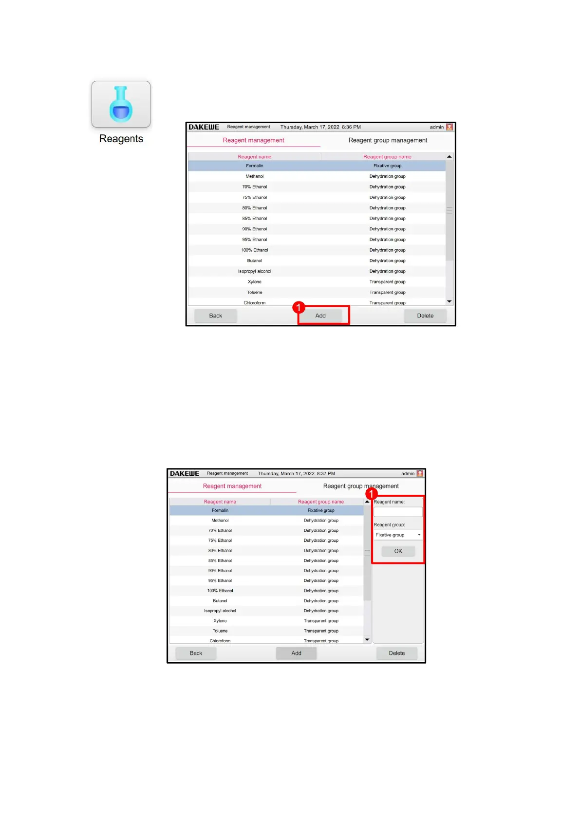 Enter the corresponding reagent name. Then, select the appropriate reagent group name