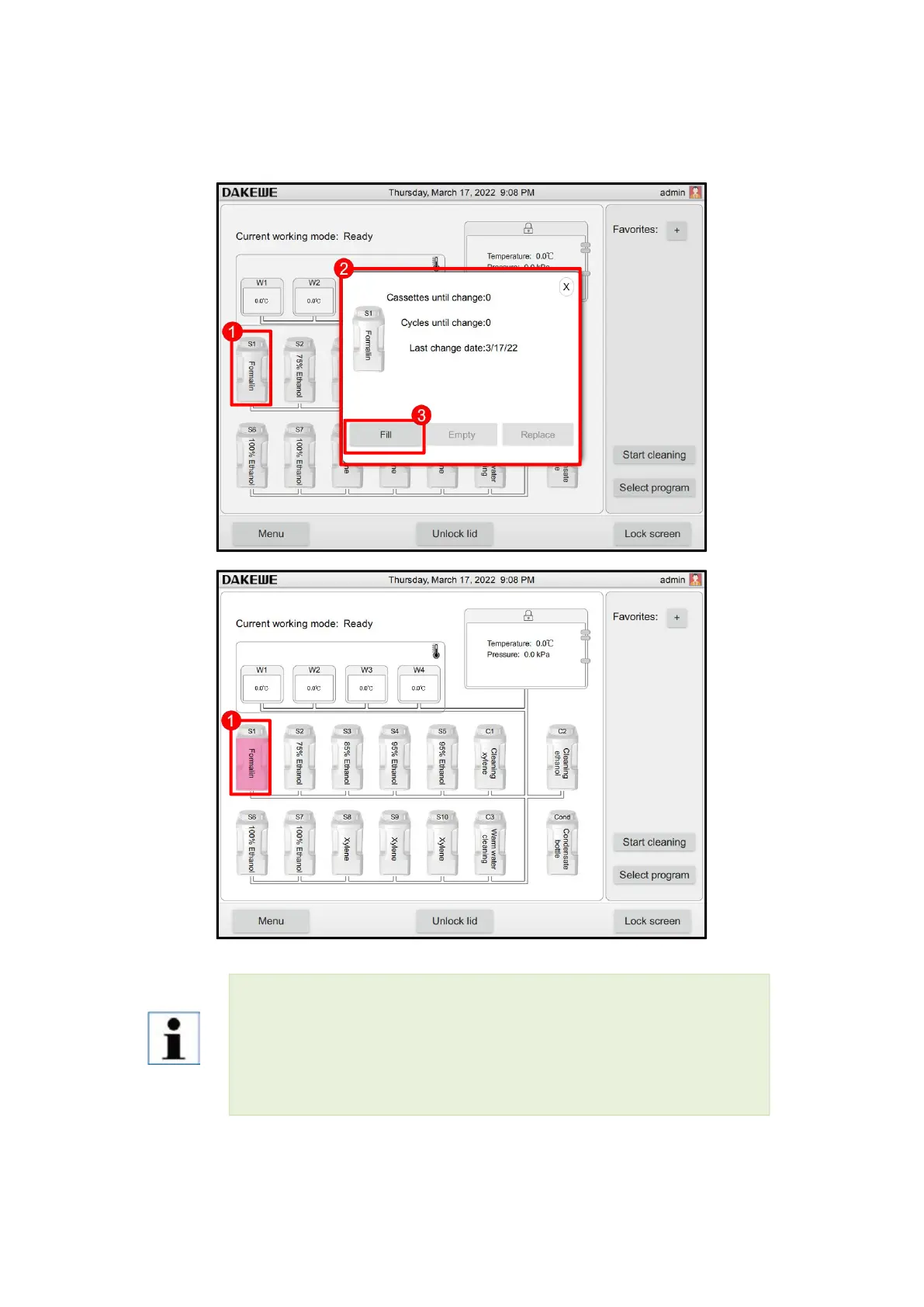 liquid level. Insufficient reagents may cause the sample to dry out because it is not